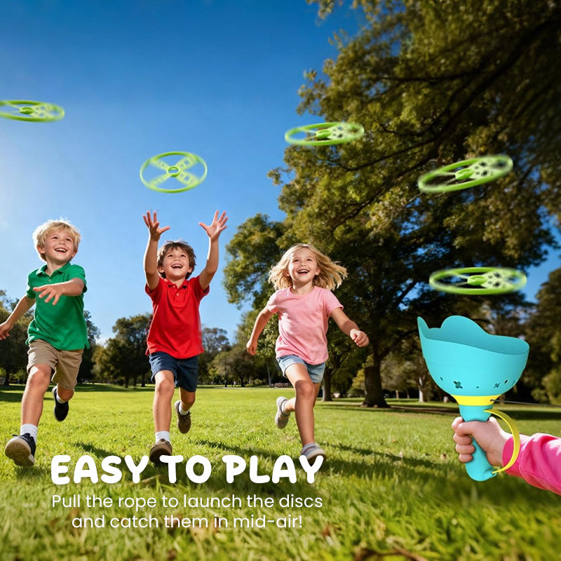 🎯 Einfach zu spielen – Ziehen Sie an der Schnur, werfen Sie die Scheiben und fangen Sie sie in der Luft!