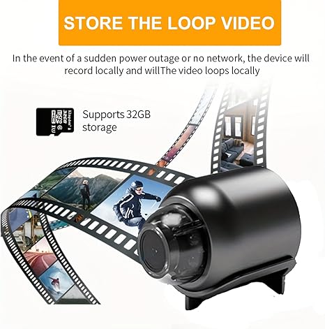 Kontinuierliche Aufzeichnung – Diese WLAN-Minikamera verfügt über keinen integrierten Akku, kann jedoch für die Fernanzeige an eine Powerbank oder einen USB-Anschluss angeschlossen werden. Sie unterstützt Loop-Aufzeichnung, um eine unterbrechungsfreie Aufnahme zu gewährleisten. Wenn die Speicherkarte voll ist, werden die ältesten Dateien durch die neuesten überschrieben. Verpassen Sie keinen Moment.