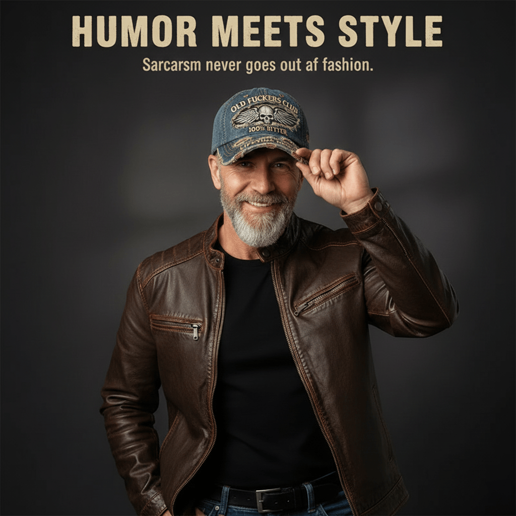 Zeigen Sie Ihren Sarkasmus mit Stolz. Auf der Vorderseite dieses Hutes sind die auffälligen Worte „Old Bastards Club – 100 % bitter – lebenslange Mitgliedschaft” zusammen mit einem geflügelten Totenkopf aufgestickt, was perfekt das zynische, lebensmüde „been there, done that”-Gefühl symbolisiert.