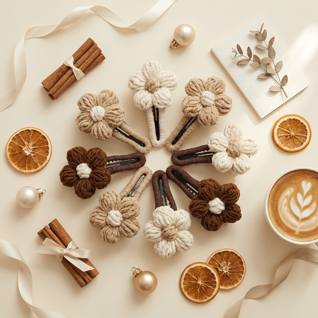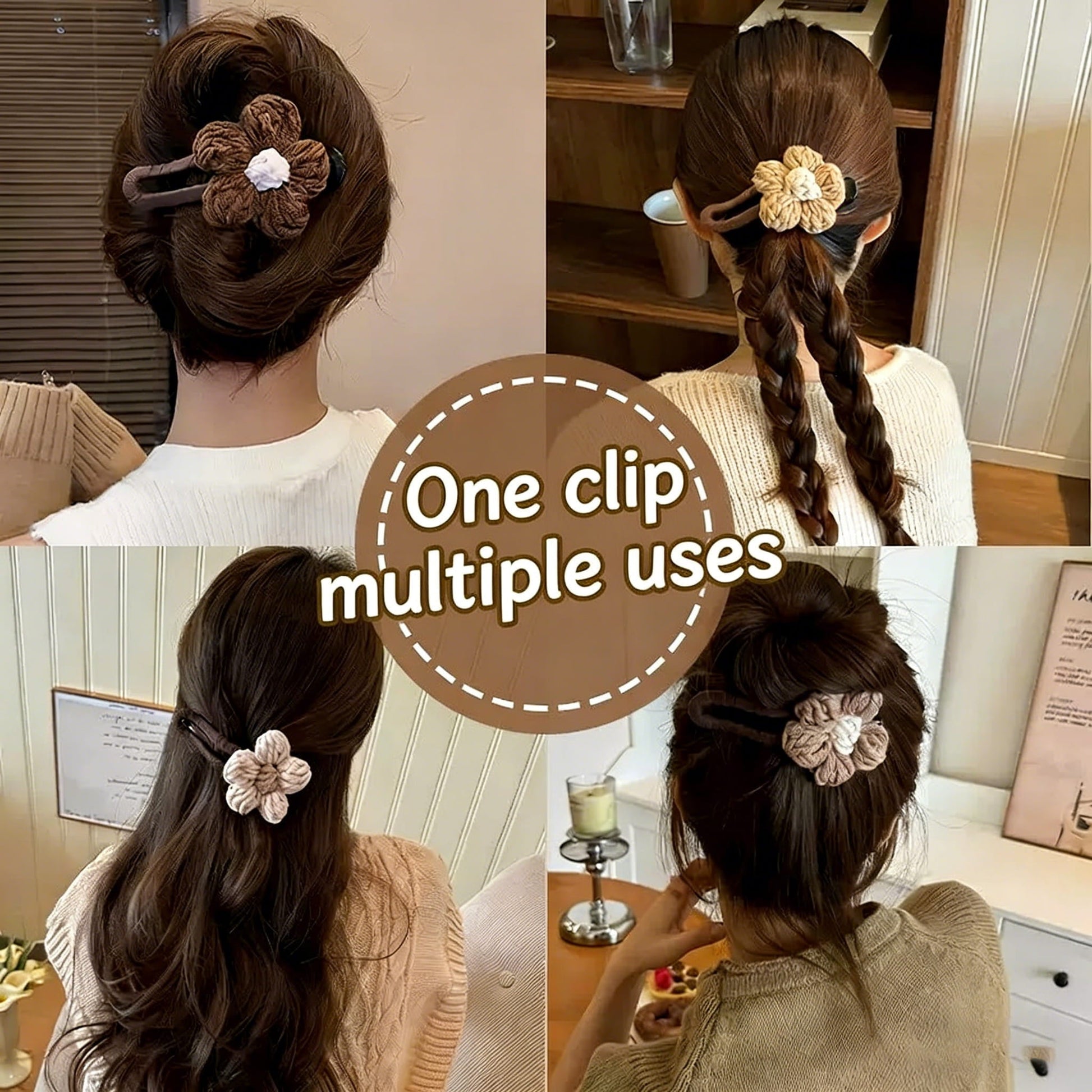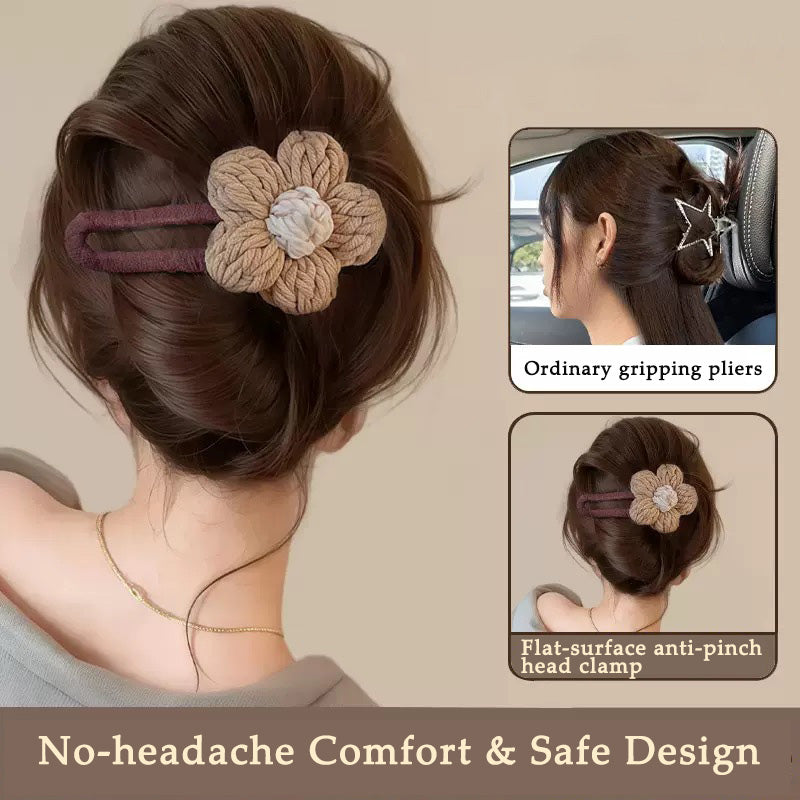 🧶Bequemes und sicheres Design ohne Kopfschmerzen, handgestrickte Blume aus weichem Garn. Keine schmerzhaften Druckstellen mehr auf der Kopfhaut. Eine sichere und bequeme Alternative zu harten Haarklammern. Perfekt für lange Tage, Reisen oder sogar Nickerchen.