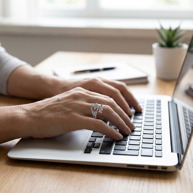 VERSTELLBARES OFFENES DESIGN: Dieser Ring hat ein praktisches offenes Design und kann vorsichtig angepasst werden, um perfekt auf die meisten Fingergrößen zu passen. Dies garantiert einen bequemen und sicheren Sitz, ohne dass eine exakte Größenanpassung erforderlich ist.