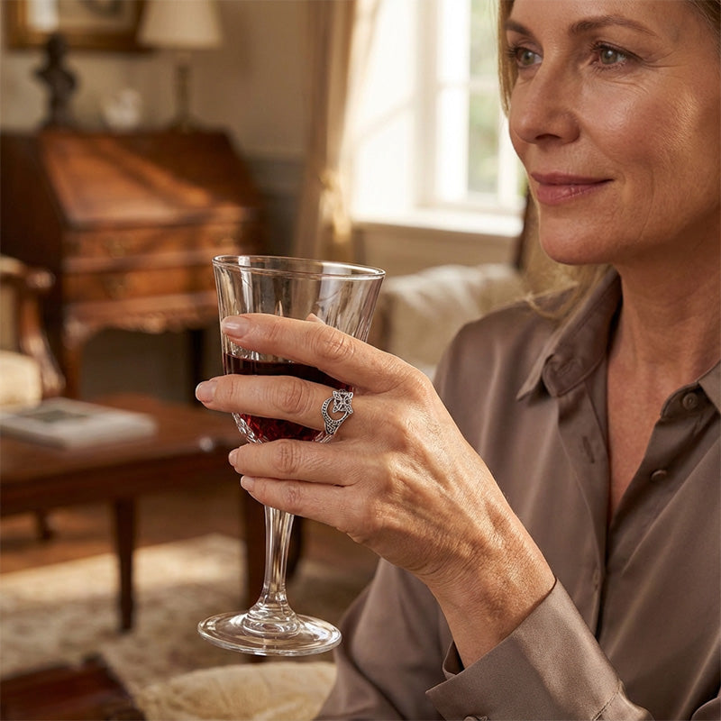 POLIERTE & OXIDIERTE OBERFLÄCHE: Eine Kombination aus hochglanzpolierter Oberfläche und sorgfältig oxidierten Akzenten lässt die detaillierten Muster deutlich hervortreten. Dieser zweifarbige Effekt verleiht dem Ring eine visuelle Tiefe und ein raffiniertes, antik inspiriertes Aussehen.