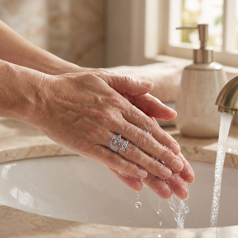 Bewahren Sie das Produkt in einem Schmuckkästchen oder einem Beutel an einem kühlen, trockenen Ort auf, um Verfärbungen und Kratzer zu vermeiden.